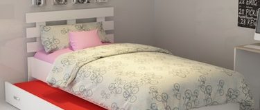 tek kişili yatak, çift kişilik yatak, 2 kapılı dolap ve oto lastiği